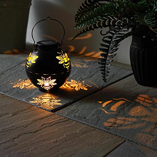 Festive Lights - Lanterna da esterno per giardino, motivo: ape luminose, lanterna solare a LED, 19 cm