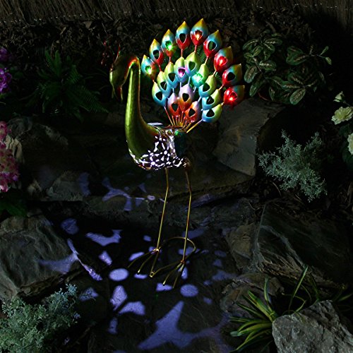 Festive Lights, pavone multicolore, 71 cm, con LED che cambiano colore ad energia solare, per esterni