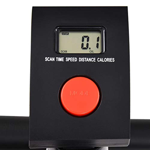 Potrete monitorare le vostre prestazioni sul display LCD che mostra informazioni sul tempo trascorso, velocità corrente, distanza e calorie bruciate. La cyclette ha un design ergonomico. La sella può essere regolata sia orizzontalmente che verticalmente.
