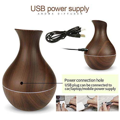 Festnight Diffusore di Aromi Ultrasuoni Vaso Legno Mini USB Umidificatore Colori LED Silenzio per Yoga Soggiorno Camera da Letto Ufficio Domestico, 130ml, Legno Chiaro/Legno Scuro/Grigio Bianco