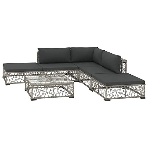 Festnight Set Divani da Giardino, Set Divano Esterno 6 pz con Cuscini in Polyrattan Grigio