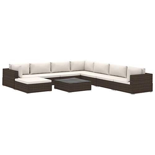 Festnight 9 pz Set Divani da Giardino in Polyrattan Marrone con Tavolino,Set Divani Angolari da Giardino in Rattan,Set Divani Modulari da Giardino per Esterno in Rattan,Salotto da Giardino