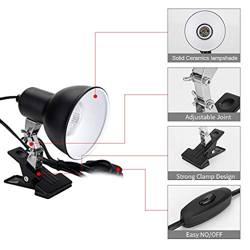 Regolabile e pratico: luce regolabile, con una clip, facile da installare e pratica da usare. Il paralume pu簷 impedire agli animali di scottarsi, il paralume in ceramica pu簷 resistere a lampadine da 200 W e la lampadina 癡 sostituibile.