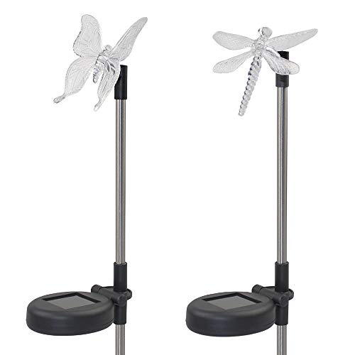 Festnight 2 Pacchi Luci Da Giardino Solari Multi Color Changing Statuetta LED Forma Palo Faretti Esterni Illuminazione Decorazione Paesaggistica Farfalla Colibrì Libellula Patio Lawn Yard