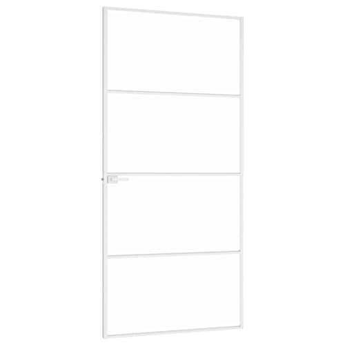 Festnight Porta Interna, Porte Interne, Porte Interne Casa, Bianca 93x201,5 cm Vetro Temperato Alluminio Slim