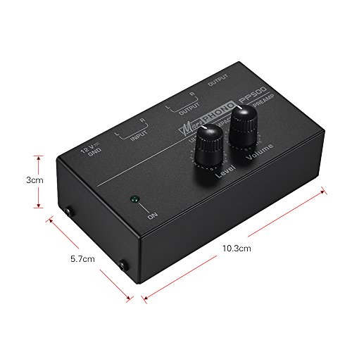 Festnight Preamplificatore Phono Preamplificatore ultracompatto con controlli di livello e volume Ingresso e uscita RCA Interfacce di uscita TRS da 1/4"
