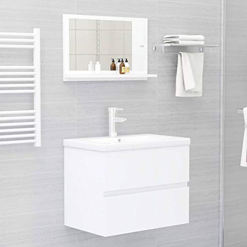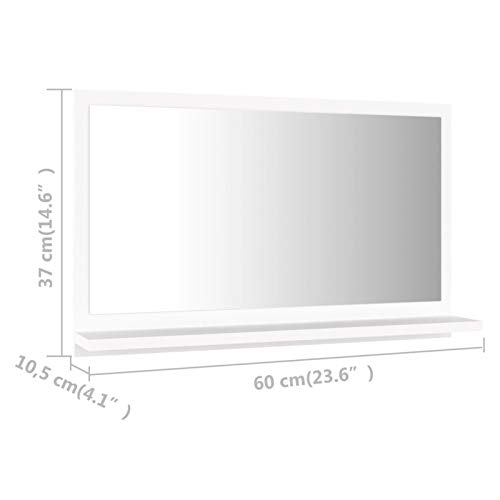 Festnight Specchiera Bagno, Specchio da Bagno, Specchio per Bagno da Parete, Specchio Bagno con Mensole 60x10,5x37 cm in Truciolato Bianco