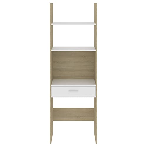 Festnjght Libreria, Libreria Verticale, Libreria Moderna, Libreria da Parete, Libreria Scaffale, in Truciolato Bianco e Rovere Sonoma 60x35x180 cm