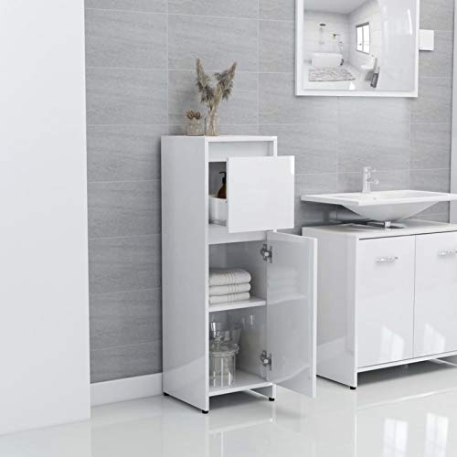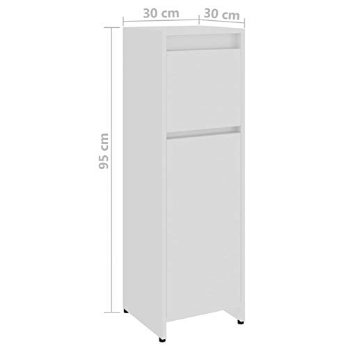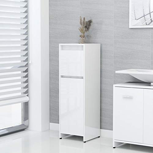 Festnjght Mobile Bagno, Armadio da Bagno, Armadietto da Terra, Mobile Bagno Salvaspazio, in Truciolato Bianco Lucido 30x30x95 cm