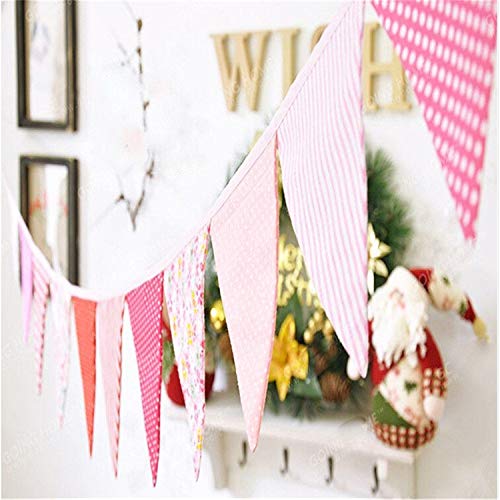 YiGo - Festone con 10 bandierine in Cotone, 3 m, Colore: Rosa