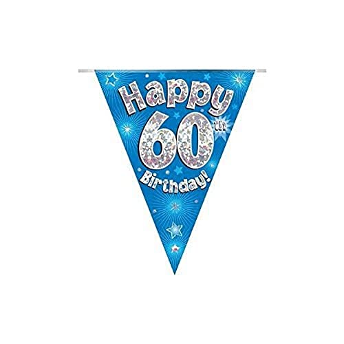 Festone per feste Happy 60th Birthday Blue Holographic 11 bandiere, 3,9 m