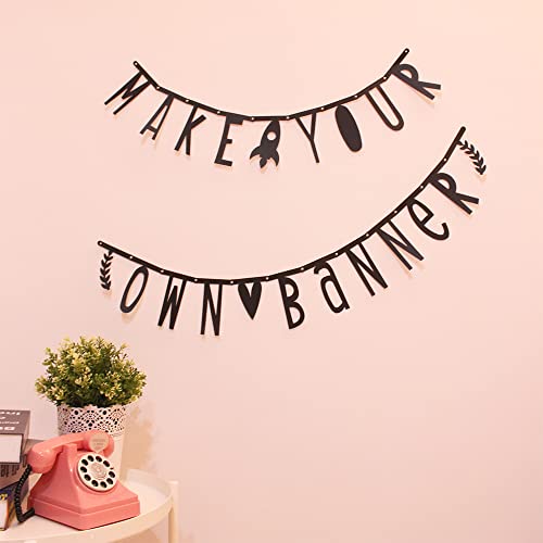 Festone con lettere fai da te, 125 pezzi, personalizzabile, 10,5 x 0,8 cm, nero + 35 pin nero