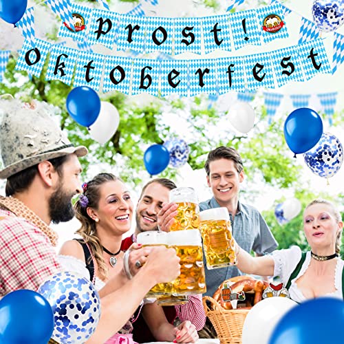 Festone per Oktoberfest, 26 palloncini per Oktoberfest, 1 striscione + 12 topper per Oktoberfest + 12 bandierine bavaresi + 20 tovaglioli + 2 nastri, palloncini decorativi per Oktoberfest