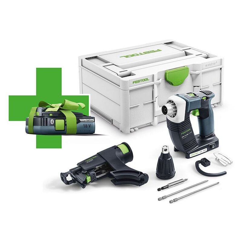 Festool Avvitatore a batteria per cartongesso DWC 18-4500-Basic-4,0 DURADRIVE - 577056 Per svasare viti in serie: lo specialista in cartongesso. Vantaggi e benefici Robusta e duratura: motore brushless EC-TEC esente da manutenzione, per una lunga durata, un rendimento eccezionale e massima resistenza Velocità negli avvitamenti in serie: possibilità di passare al caricatore per viti, rapidamente e senza luso di attrezzi per lutilizzo di viti fascicolate Funzione Start/Stop, per risparmiare energia: il motore funziona solo quando necessario Per lavorare con precisione: sistema di disinserimento elettronico, esente da usura, per unesatta profondità di avvitamento Potenza a batteria personalizzata: per la massima leggerezza negli impieghi brevi e nelle applicazioni meno gravose, con la batteria Compact da 3,1 Ah. Oppure, per potenza e durata ai massimi livelli, con la batteria Li-HighPower Compact da 4,0 Ah (di potenza adeguata per qualsiasi applicazione, ma più leggera del 20% e più