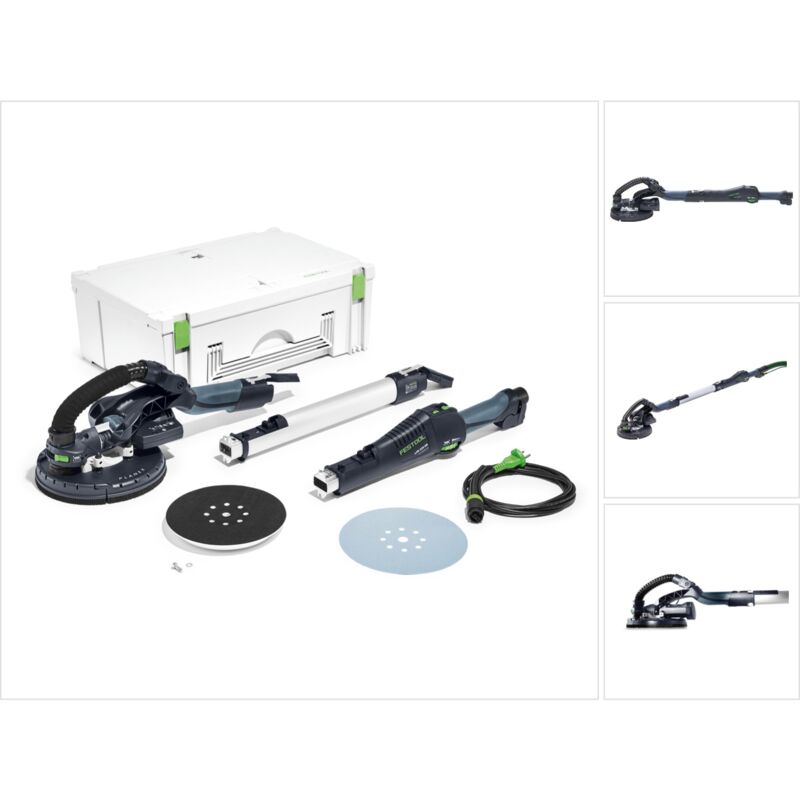 Dotazione: - 1x Festool LHS-E 225 EQ PLANEX Levigatrice a stelo 400 W / 215 mm - 1x Valigetta Systainer SYS MAXI - 1x Piastra di levigatura ST-STF-D215/8-LHS-E ( 201895 ) - 1x Carta vetrata - 1x Cavo di rete Descrizione prodotto: La Planex LHS 225 癡 una levigatrice a stelo efficiente di Festool. Con una lunghezza di lavoro facilmente regolabile, questa Planex pu簷 svolgere le funzioni sia di levigatrice a collo corto che quelle a collo lungo o, se necessario, a collo super lungo. Il robusto riduttore a due stadi permette di estrarre fino a 30 kg all'ora su pareti e soffitti. Il Planex LHS 225 convince per il suo baricentro ottimale e la sua maneggevolezza, e allo stesso tempo ha un peso molto basso grazie all'aspirazione regolabile. Pu簷 essere allungata e accorciata in pochi passi e offre la massima efficienza anche in prossimit� dei bordi grazie al segmento di spazzola rimovibile. Dati tecnici: Consumo energetico: 550 W Diametro della piastra di levigatura: 215 mm Numero di giri a