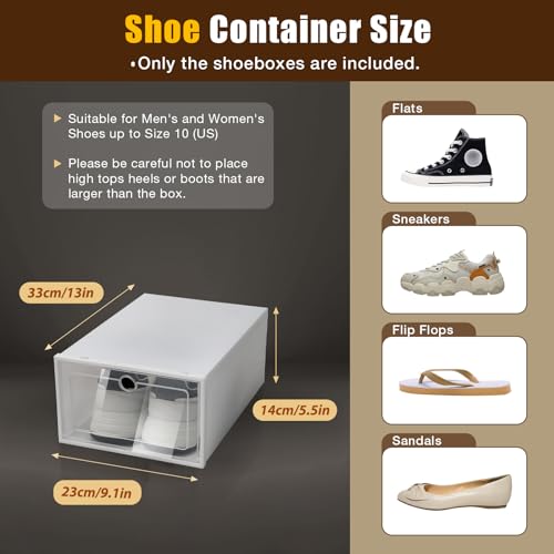 Fetcoi Scatola per scarpe impilabile da 24 pezzi con coperchio, scatola per scarpe trasparente, in plastica bianca (24 pezzi)