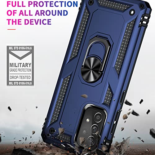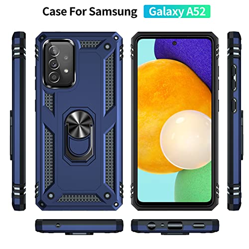 Fetrim Custodia per Galaxy A52, Cover PC TPU Cassa Shell Supporto di Anello Rotante Case per Samsung Galaxy A52 5G/4G/A52S 5G Blu Navy