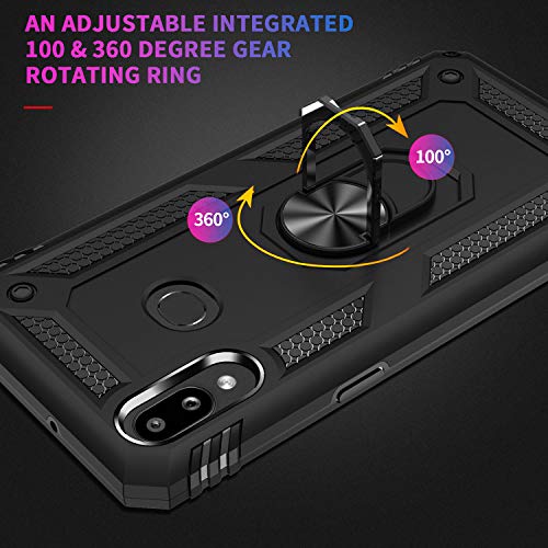 Fetrim Custodia per Galaxy A10S, Cover PC TPU Cassa Shell Supporto di Anello Rotante Case per Samsung Galaxy A10S Nero