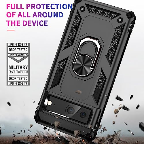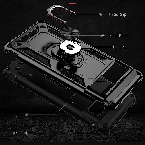 Fetrim Custodia per Google Pixel 7, Cover PC TPU Cassa Shell Supporto di Anello Rotante Case per Google Pixel 7 Nero