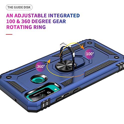 Fetrim Custodia per Huawei Y7P 2020, Cover PC TPU Cassa Shell Supporto di Anello Rotante Case per Huawei Y7P 2020/P40 Lite E/Honor Play 4T Blu Navy
