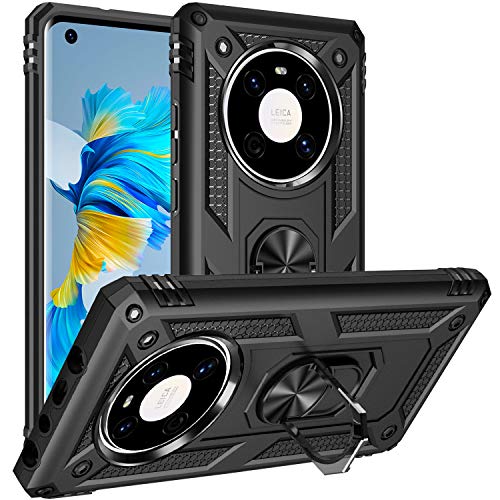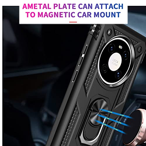Fetrim Custodia per Huawei Mate 40, Cover PC TPU Cassa Shell Supporto di Anello Rotante Case per Huawei Mate 40 Nero
