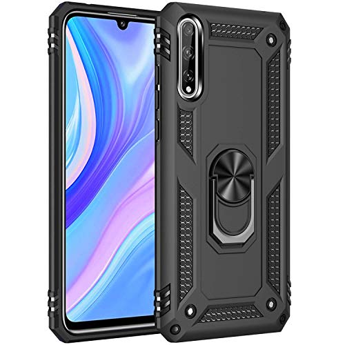 Fetrim Custodia per Huawei Y8P, Cover PC TPU Cassa Shell Supporto di Anello Rotante Case per Huawei Y8P/P Smart S Nero
