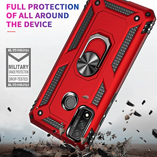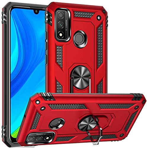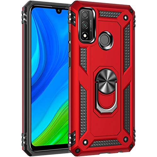 Fetrim Custodia per Huawei P SMART 2020, Cover PC TPU Cassa Shell Supporto di Anello Rotante Case per Huawei P SMART 2020 Rosso