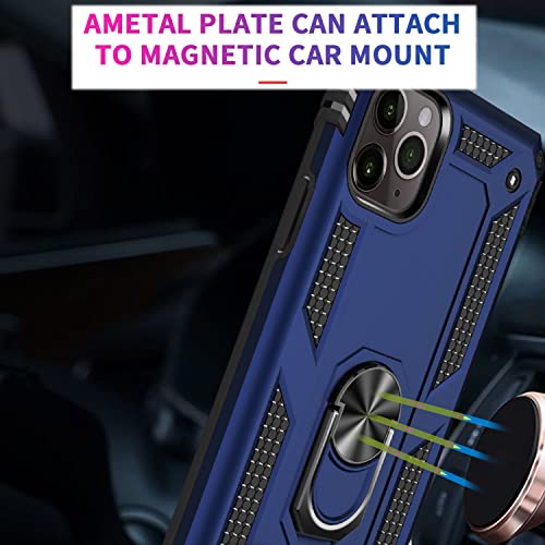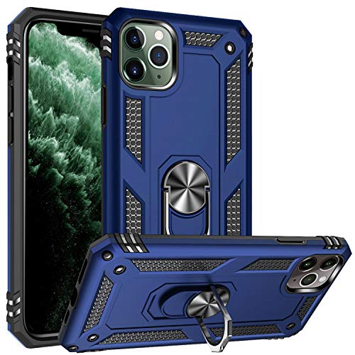 Fetrim Custodia per iPhone 11 PRO, Cover PC TPU Cassa Shell Supporto di Anello Rotante Case per Apple iPhone 11 PRO Blu Navy
