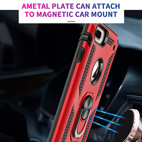 Fetrim Custodia per iPhone 7 Plus, Cover PC TPU Cassa Shell Supporto di Anello Rotante Case per Apple iPhone 6 Plus/6S Plus/7 Plus/8 Plus Rosso