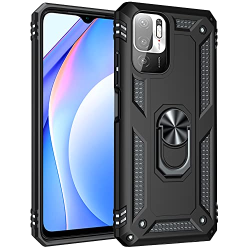 Fetrim Custodia per Redmi Note 10 5G, Cover PC TPU Cassa Shell Supporto di Anello Rotante Case per Redmi Note 10 5G/Xiaomi Poco M3 Pro 5G Nero