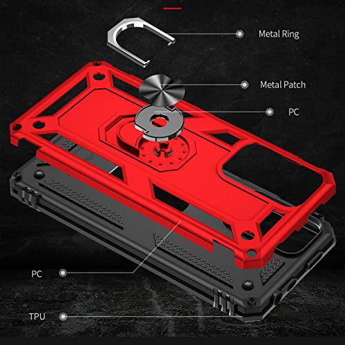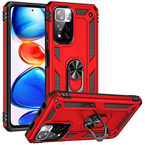 Fetrim Custodia per Redmi Note 11 Pro, Cover PC TPU Cassa Shell Supporto di Anello Rotante Case per Redmi Note 11 Pro Rosso