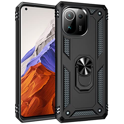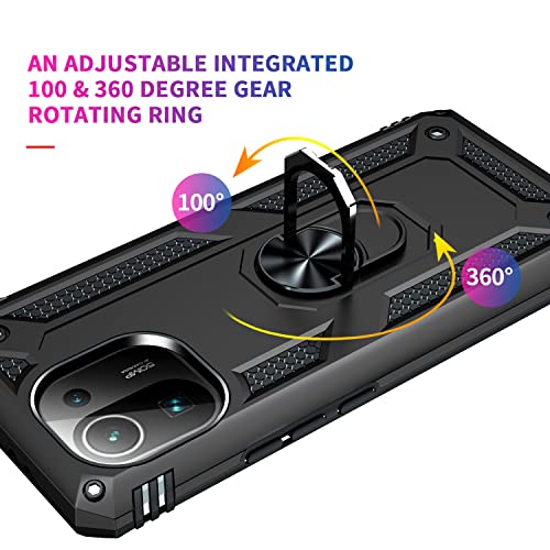 Fetrim Custodia per Xiaomi MI 11 PRO, Cover PC TPU Cassa Shell Supporto di Anello Rotante Case per Xiaomi MI 11 PRO Nero