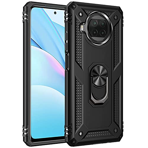 Fetrim Custodia per Xiaomi Mi 10T Lite 5G, Cover PC TPU Cassa Shell Supporto di Anello Rotante Case per Xiaomi Mi 10T Lite 5G Nero
