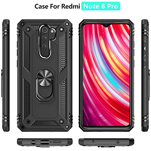 Fetrim Custodia per Xiaomi RedMi Note 8 PRO, Cover PC TPU Cassa Shell Supporto di Anello Rotante Case per Xiaomi Redmi Note 8 PRO Nero