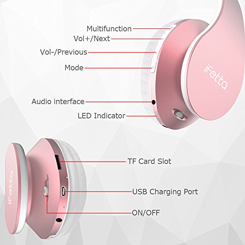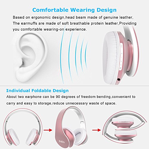 Fetta - Cuffie Bluetooth Wireless pieghevoli, con microfono, cuffie da viaggio per dispositivi Bluetooth