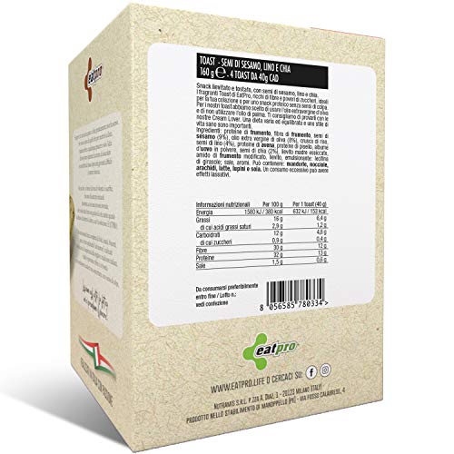 Fette Tostate Proteiche EatPro ● Toast Proteici Senza Carboidrati ● 3 conf. da 4 Porzioni da 40 g con Semi di Chia, Sesamo Nero e Lino ● Toast Keto 12% Carboidrati, 32% di Proteine ● Dieta Proteica