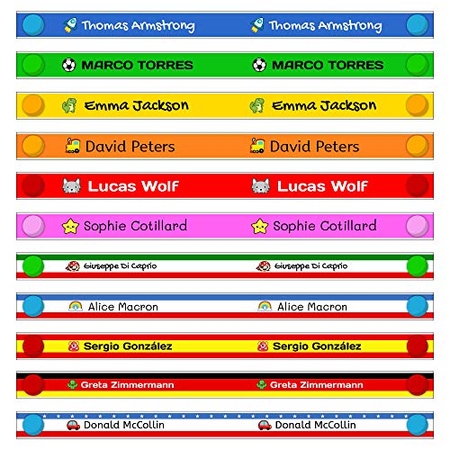 Misure: 15 mm di larghezza x 20 cm di lunghezza. Adatto per appendere giacche, camici, cappotti, zaini. Il nome viene stampato due volte in modo che sia visibile sul lato e sul lato del nastro. Scegli tra 100 icone e personalizzale con il disegno che piace di più a tuo figlio o tua figlia. Le etichette perfette per non perdere le giacche dei tuoi piccoli.