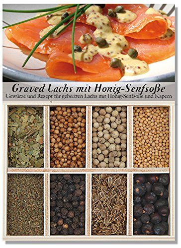 Originally, salmon should be made a long-lasting product. From this original idea, a real delicacy with a famous sweet mustard sauce was born. It's certainly time-consuming to pickle the salmon for four entire days, but it's worth it. Exactly like the fishermen on the coasts love it. This spice-box contains the necessary spices, the recipe, a shopping list and the dish's history. The content is enough to cook 3 times for 3 to 4 people.