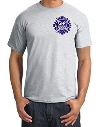 Feuer1 T Shirt Ash, Miami Beach Fire Rescue (Blu), Grigio, XL