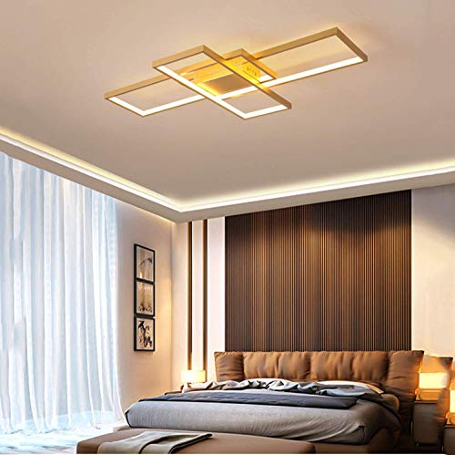 Feuilles Lampada da soffitto a LED per soggiorno, lampada da soffitto in 3 rettangolari, ideale per soggiorno, camera da letto, sala da pranzo, 72 W, colore oro, luce neutra 4500 K