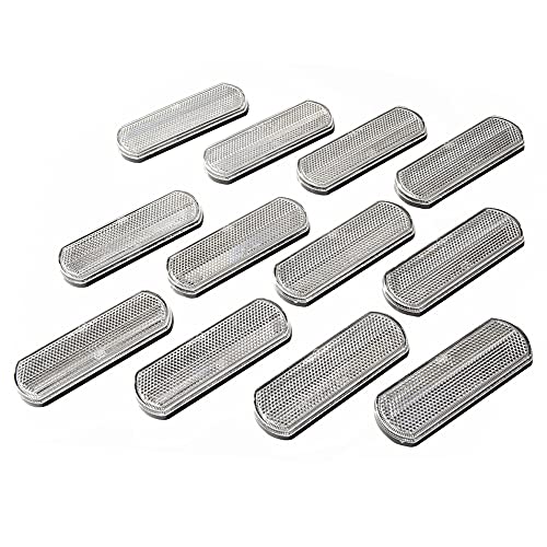 Feuunly 12 Pezzi Catarifrangenti Rimorchio Autoadesivo Bianco, Catarifrangente Adesivo Tondi Angolo Rettangolari Bianco, Catarifrangente per Rimorchio Bici Moto Macchine Agricole Trattore (Bianco)