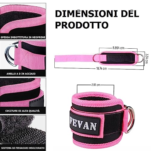 FEVAN Pack 2 Cavigliere Cavi Palestra Imbottito per Uommo e Donna - Cinghie per Caviglia Palestra - Cavigliere palestra - Cavigliere Fitness in Neoprene e Acciaio (Rosa)