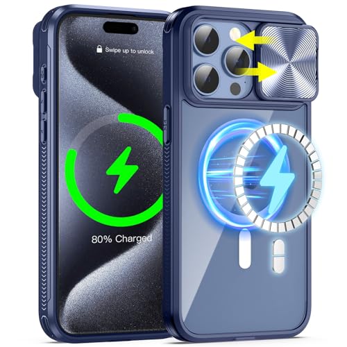Fewdew Cover Magnetica per iPhone 15 Pro Compatibile con MagSafe,Custodia iphone 15 Pro con Protezione Fotocamera,Antiurto Militare Anti Graffio Case con iPhone 15 Pro 6.1'' 2023,Blu