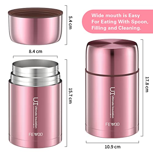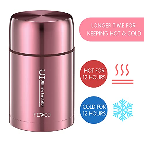 FEWOO In Acciaio Inox Scatole Cibo Isotermiche, 800ml Lunch box, senza bpa,Isolato pasto caldo, Contenitore Cibo Isolato Con Borsa (Oro Rosa)
