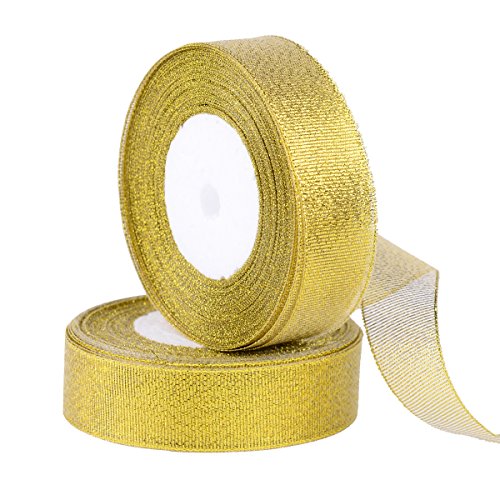 Feyarl 45 m (2 rotoli x 22.5 m) di larghezza 25 mm Premium glitter Sparkle metallico nastro per artigiani, matrimonio, festa, decorazione per la casa, regali, biglietti, floreale progetti Gold