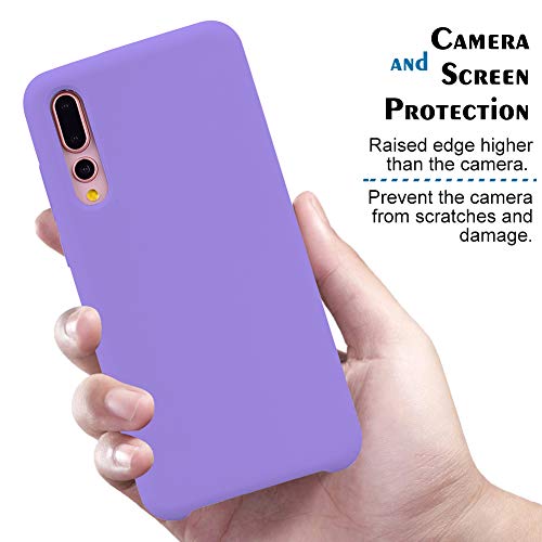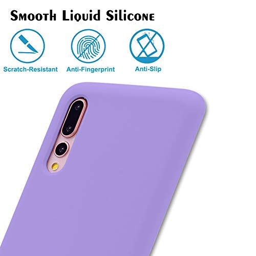 Feyten Cover Huawei P20 PRO [con Vetro Temperato], Custodia Gomma Gel Silicio Liquido con Fodera Microfibra Morbida Caso Silicone Sottile Protettiva Cover (Viola Chiaro)