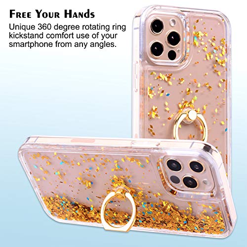 Feyten Cover per Cover iPhone 12 PRO Max con Vetro Temperato [2 Pack],Bling Liquido Custodia Brillantini Luminosa TPU Silicone Protettivo Sabbie Case per iPhone 12 PRO Max (6,7 Pollici) (Oro)