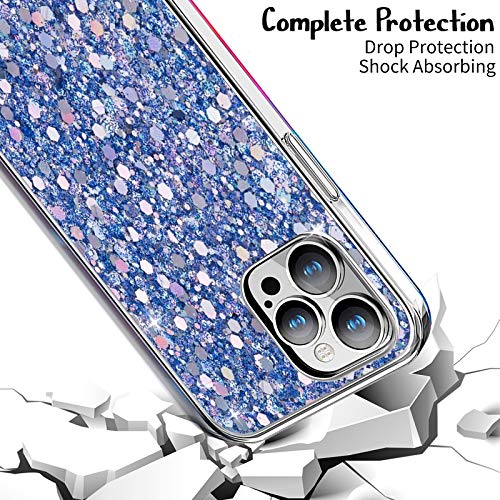 Feyten Cover per iPhone 12 / iPhone 12 PRO con Vetro Temperato [2 Pack],Lucciante Brillantini Design TPU Gel Silicone Protettivo Cover Custodia per iPhone 12 / iPhone 12 PRO (6,1 Pollici) (Blu)