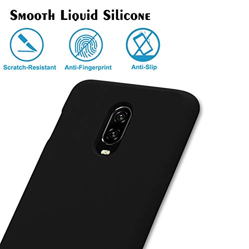 Feyten Cover OnePlus 6T [con Vetro Temperato], Custodia Gomma Gel Silicio Liquido con Fodera Microfibra Morbida Caso Silicone Sottile Protettiva Cover (Nero)