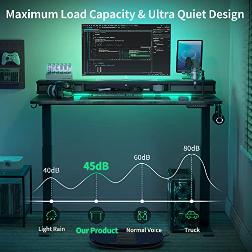 FEZIBO Scrivania elettrica regolabile in altezza con 2 cassetti e striscia LED,120 x 60 cm,con controllo memoria,scrivania in piedi per casa,ufficio,sistema anticollisione,nero (EU-Y-SDE- JL-48BCF)